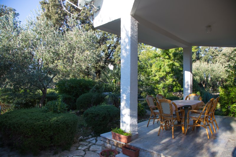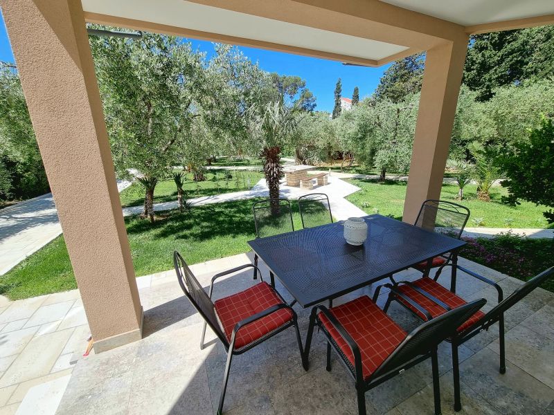 Ispred kuće je veliki uređeni vrt kojeg samo cesta dijeli od mora. U dvorištu kuće nalazi se zajednički prostor za druženje sa ljetnom kuhinjom i grilom.