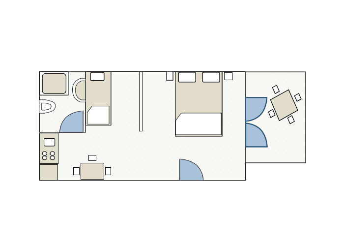- dnevni boravak, kuhinja i blagovaonica sa dva pomoćna ležaja u jednom prostoru