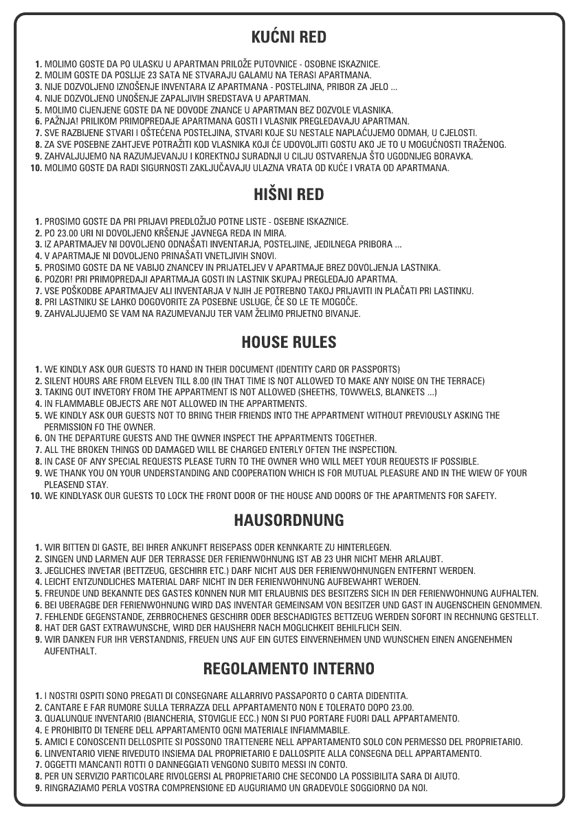 - Svi apartmani su opremljeni klima uređajima, SAT/TV, Internet